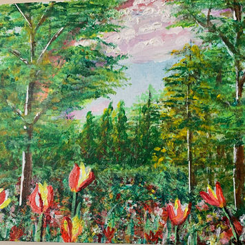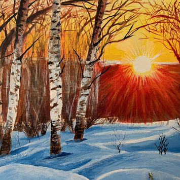 Three of them are 12" X 18" : Icy Sunset, Snowy Tree, Tulips under Rainbow.